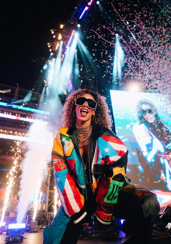 vibe as the reggaeton king owning the super bowl stage in this electric latin portrait.