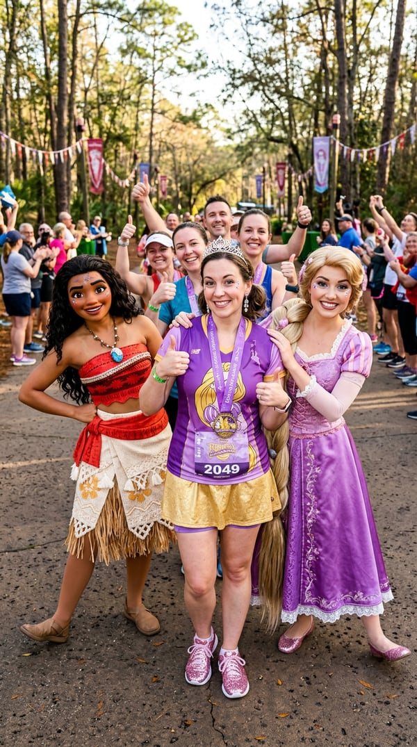 character photo conga is an AI portrait style created by selfielab on selfielab. strike a fun pose with ariel and friends in costume during princess weekend character trail magic. Once purchased, you can use it with any of your characters in selfielab's AI image generator.