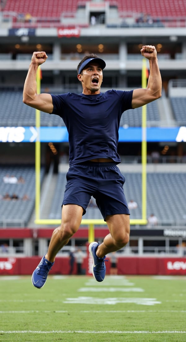 endzone navy pump selfie is an AI portrait style created by selfielab on selfielab. pump up endzone style as super bowl lx score celebrator. Once purchased, you can use it with any of your characters in selfielab's AI image generator.