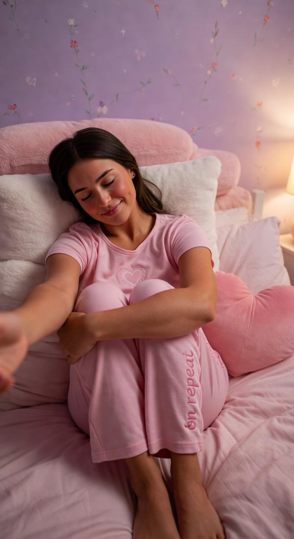 free hearts pajama set is an AI portrait style created by selfielab on selfielab. dreamy free people on repeat heart pajama pants and top for whimsical valentine's sleepover mood. Once purchased, you can use it with any of your characters in selfielab's AI image generator.