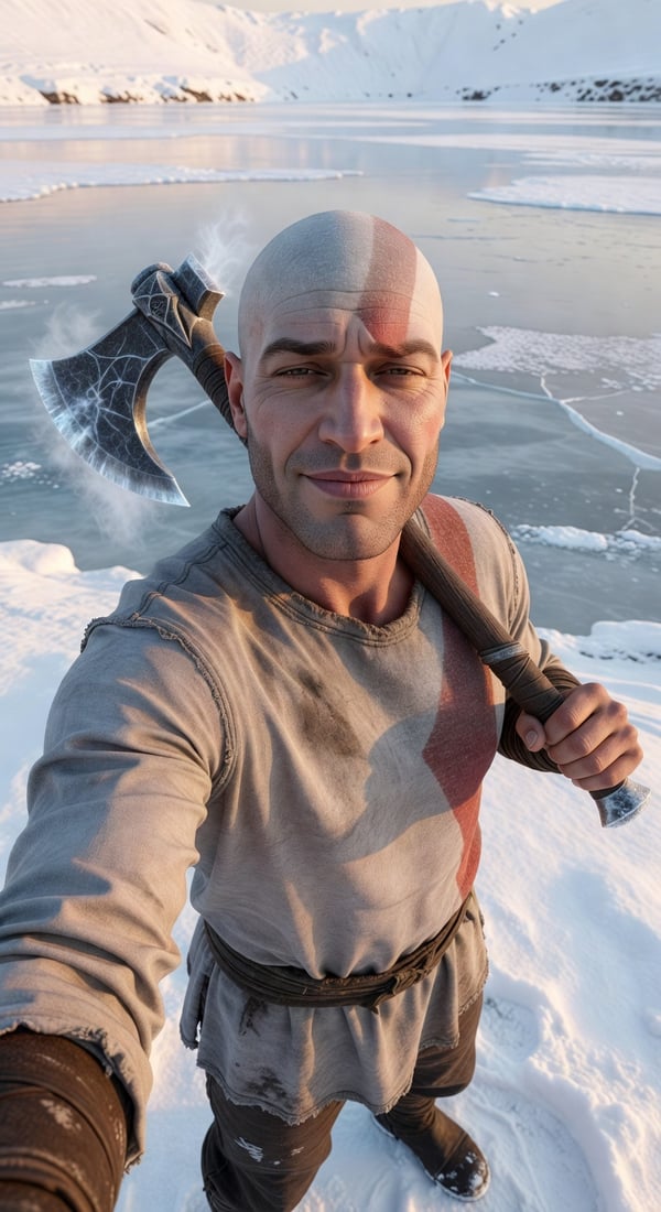 leviathan axe chill is an AI portrait style created by selfielab on selfielab. casual lakeside vibe with leviathan axe after slaying draugr in god of war realms. Once purchased, you can use it with any of your characters in selfielab's AI image generator.