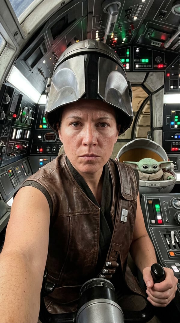 mandalorian falcon smuggle is an AI portrait style created by selfielab on selfielab. pilot the millennium falcon with din djarin and grogu on the new smugglers run mission at galaxy’s edge. Once purchased, you can use it with any of your characters in selfielab's AI image generator.