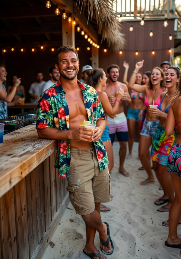 sandpiper tiki bar bash is an AI portrait style created by selfielab on selfielab. party hard at the legendary tiki bar on sandpiper beacon beach during pcb spring break with dj vibes. Once purchased, you can use it with any of your characters in selfielab's AI image generator.