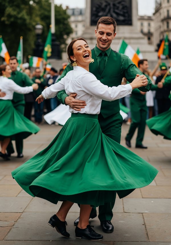 kick up heels at london's trafalgar square st patrick's celebration. global irish party.